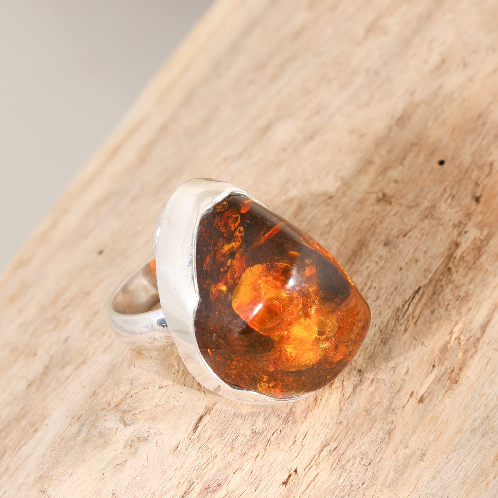 Designer Textured Sterling Silver, Baltic Butterscotch Amber Ring SIZE 8